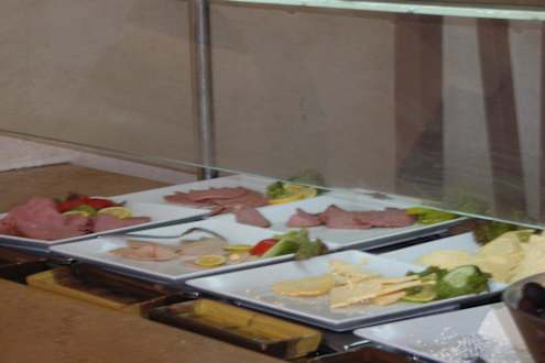 FrühstückObwohl die Wurst eh schon 3 mm stark geschnitten ist, dreht sie sich (vermutlich wegen der Frische) dennoch auf.