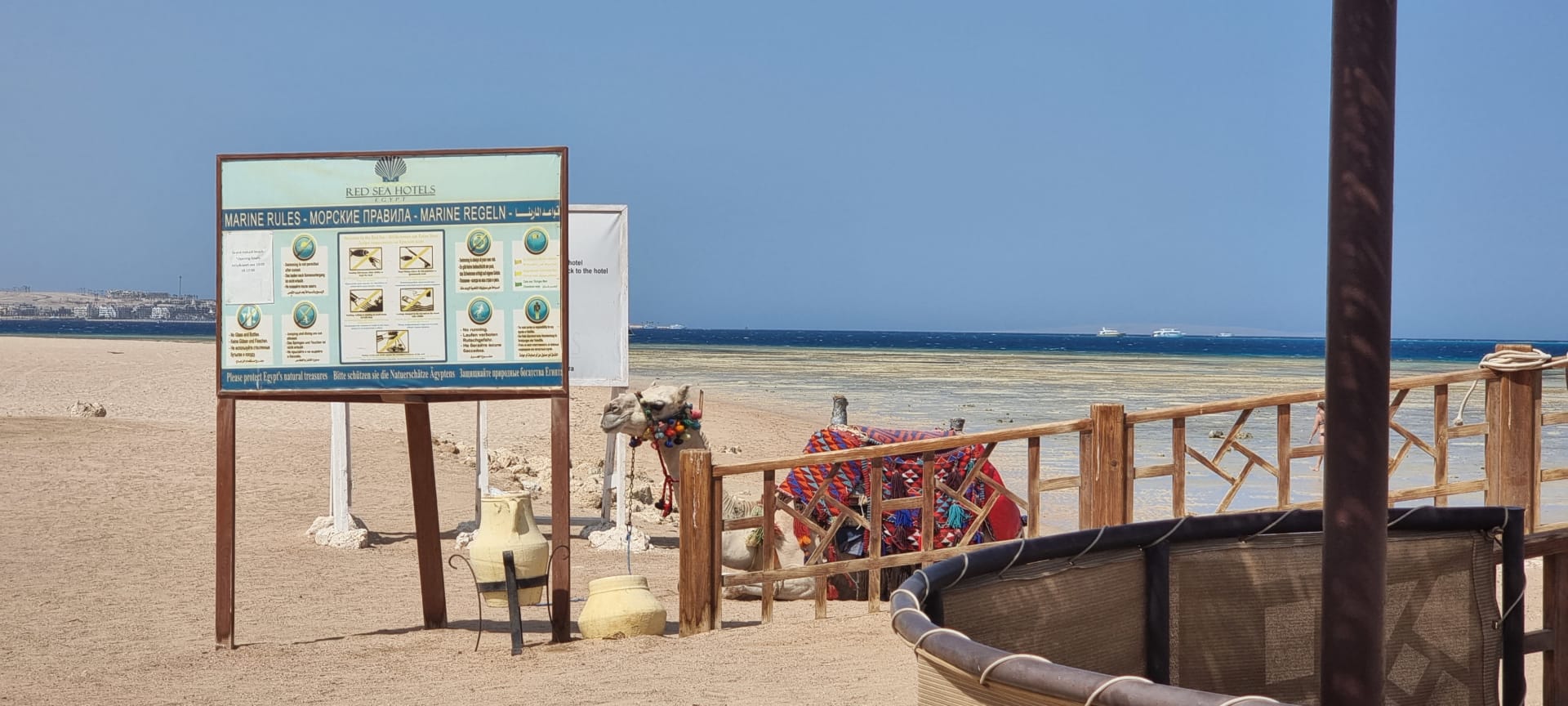 Kostenpflichtiges Kamelreiten oder Fotografieren beim Strandausgang des Hotels