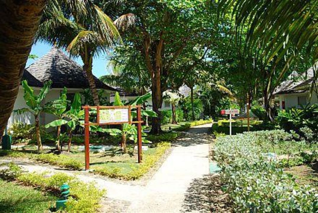 Weg durch die Gartenanlage mit üppiger Vegetation.
