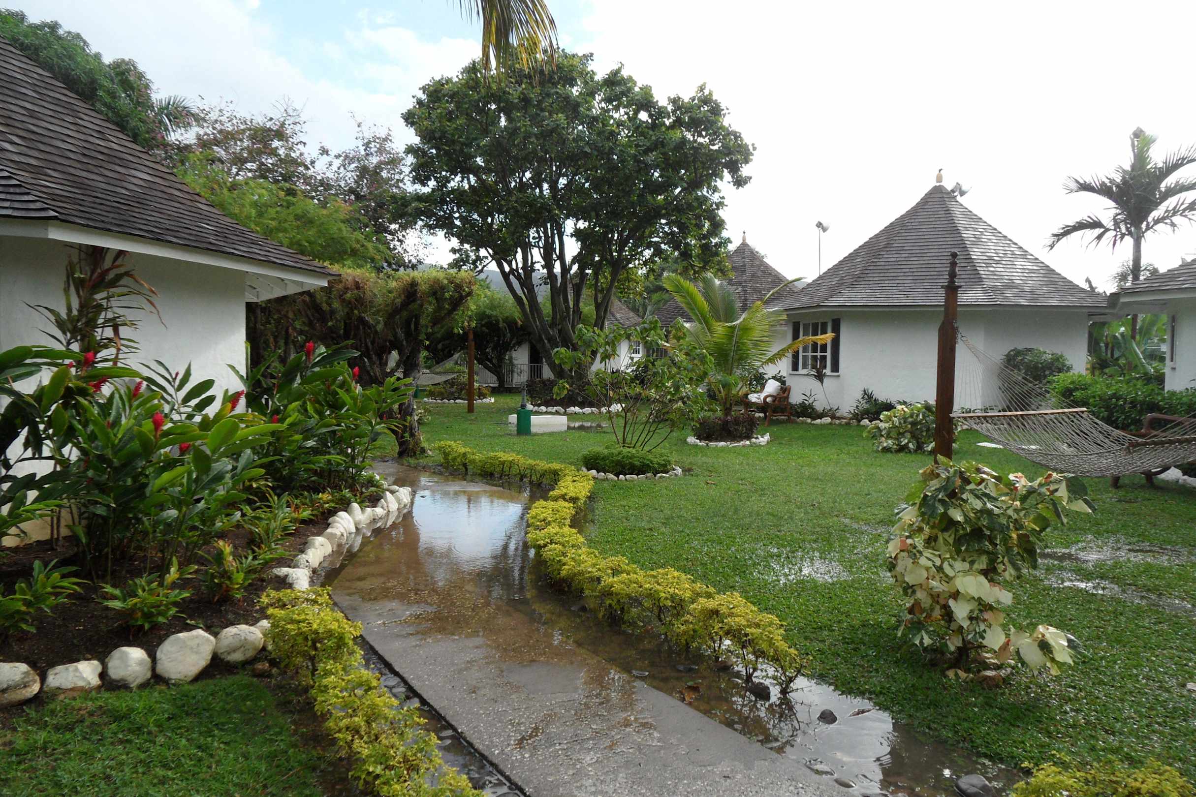 Gartenbungalows im Regen