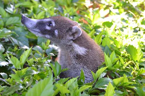 Mama-Nasenbär in der Hecke
