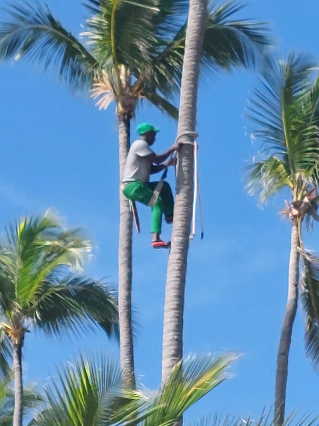 Auch hier wird gearbeitet , überschüssige Blätter oder Kokosnüsse entfernt