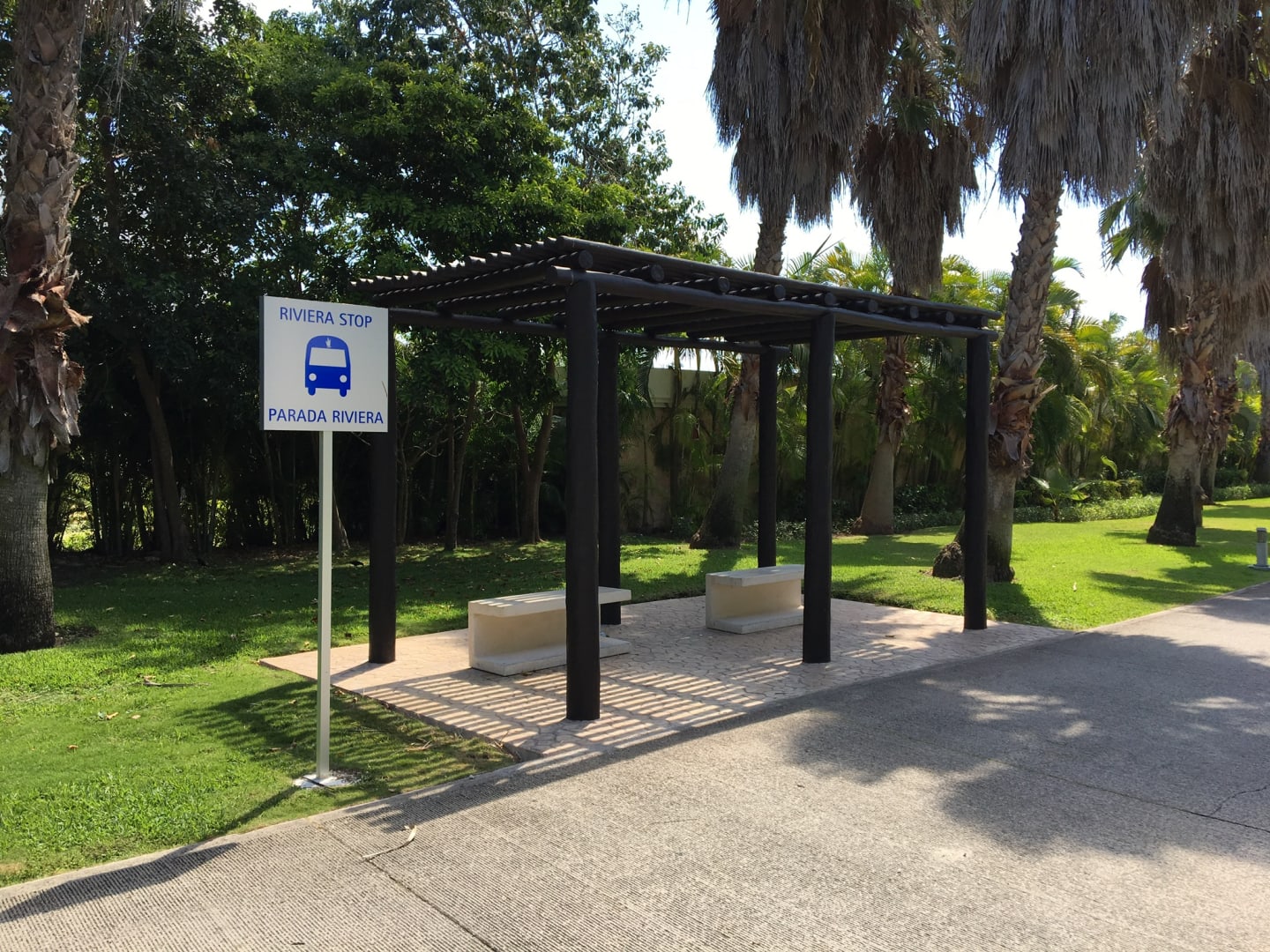Haltestelle für den Elektrobustransfer zwischen Lobby und Strand