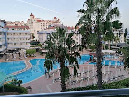 Unser Ausblick aus dem Zimmer Richtung Garten/Pool