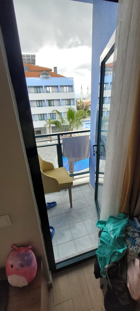 ZimmerMinistehbalkon, wir haben den Stuhl vom zimmer da raus gestellt, weil auch im zimmer zu wenig Platz war