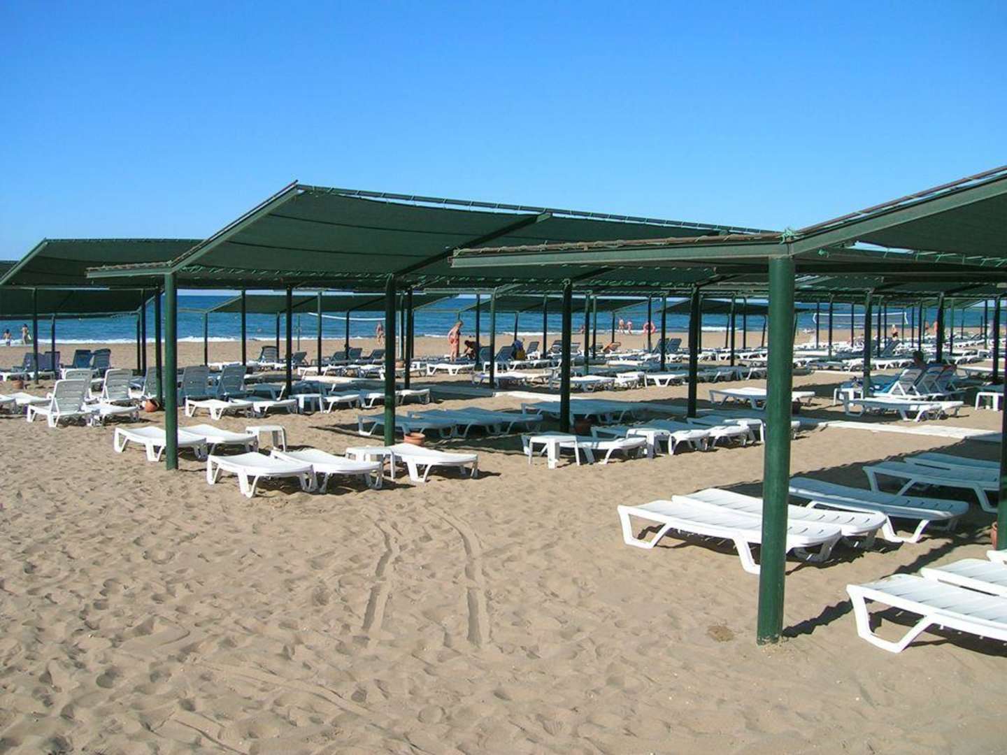 Blick vom Weg auf die StrandliegenNach dem kurzen Weg zum Strand kann man sich hier eine Liege aussuchen.