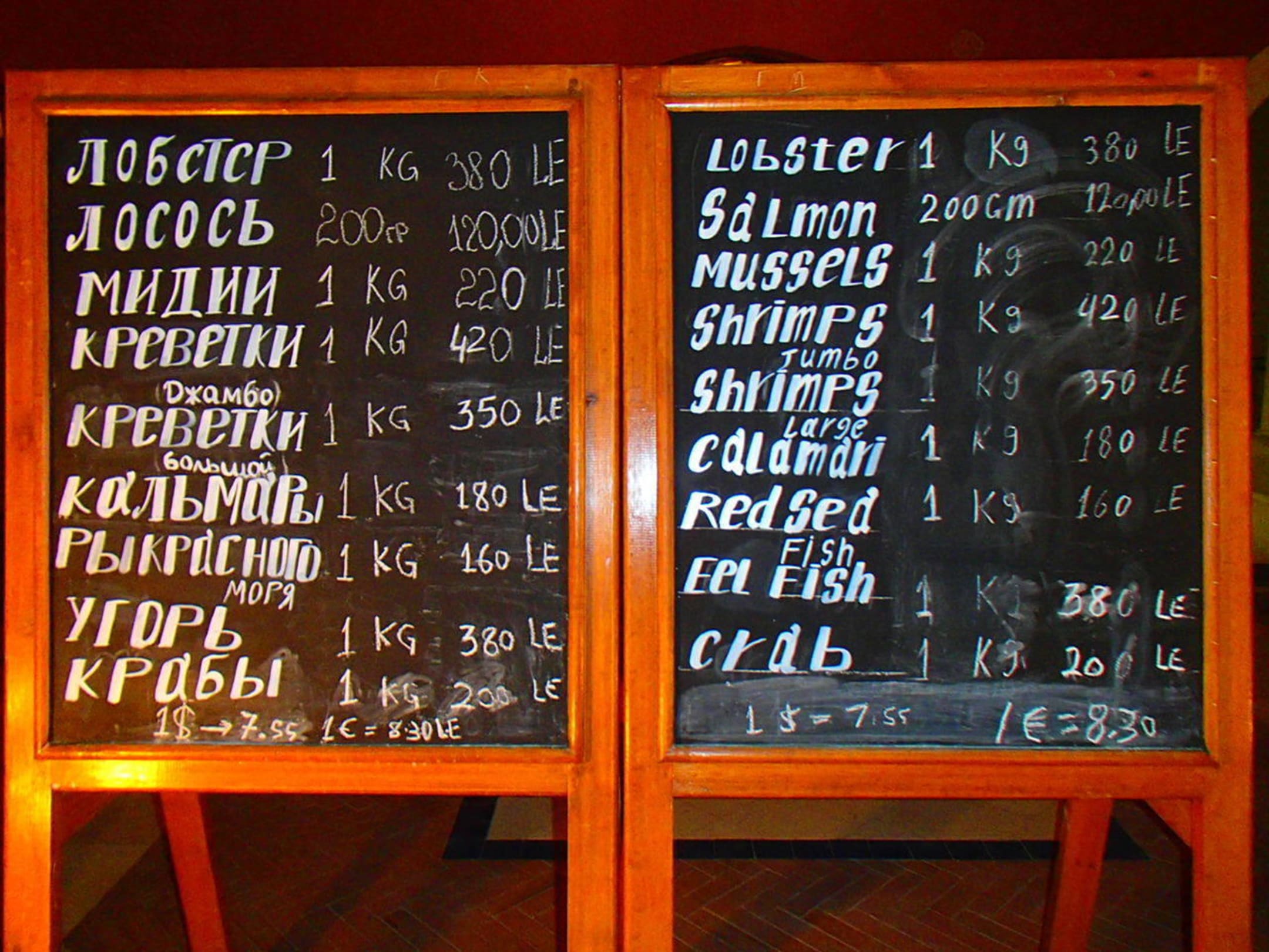 Цены на морепродукты в рыбном ресторане