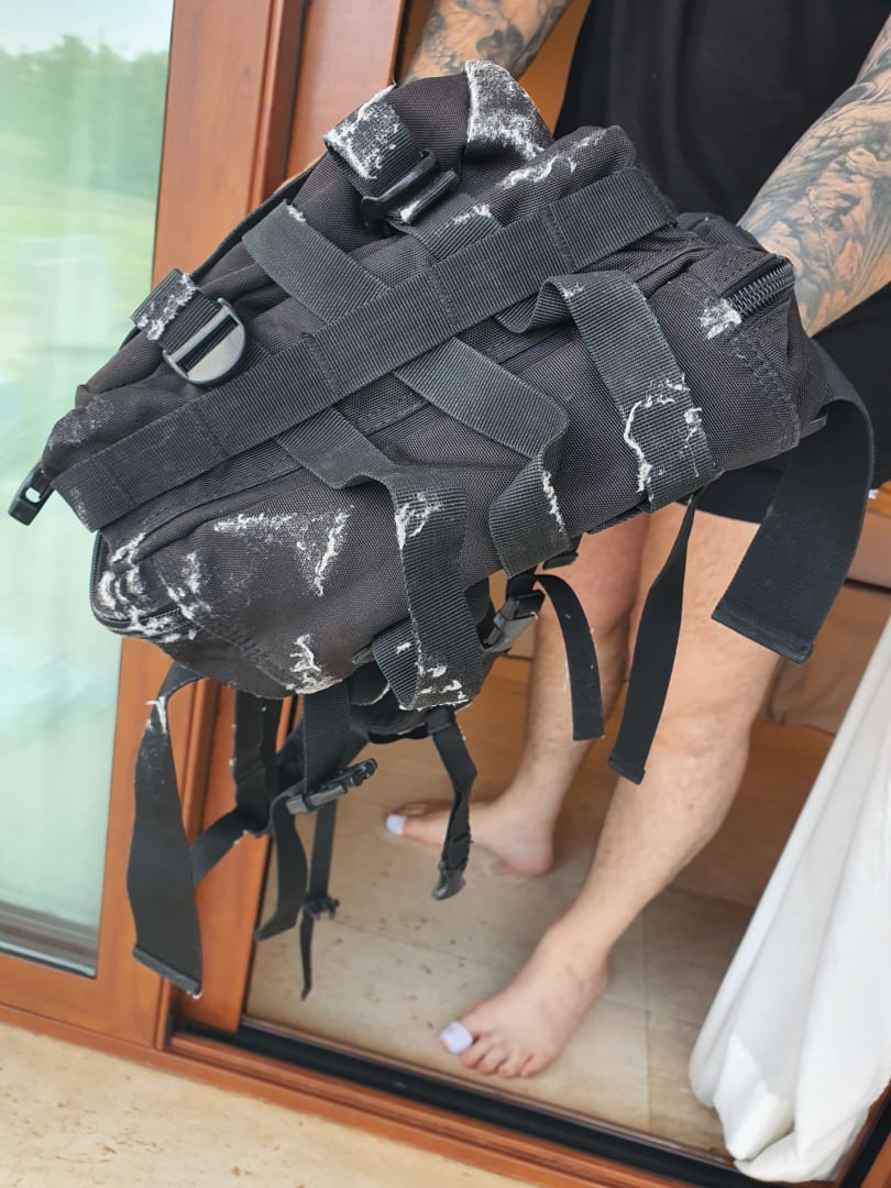 Den Rucksack und 2 Sturzhelme haben wir blöderweise auf den Kasten gelegt, leider kein Bild von den Helmen, da wir diese sofort gereinigt haben weil wir si zum Motorradfahren brauchten