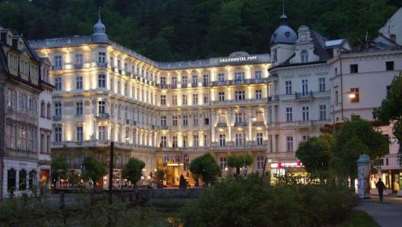 Nachtaufnahme Hotel PuppAm Ende der Kurzone in Karlsbad befindet sich das, am Abend wunderschön beleuchtete Hotel Pupp.