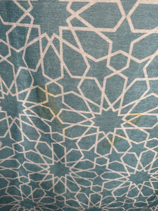 Spermaflecken am Vorhang neben dem Bett