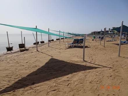 Strand mit Liegen, unter diesen Dreiecken muss man den ganzen Tag dem Schatten nach rennen