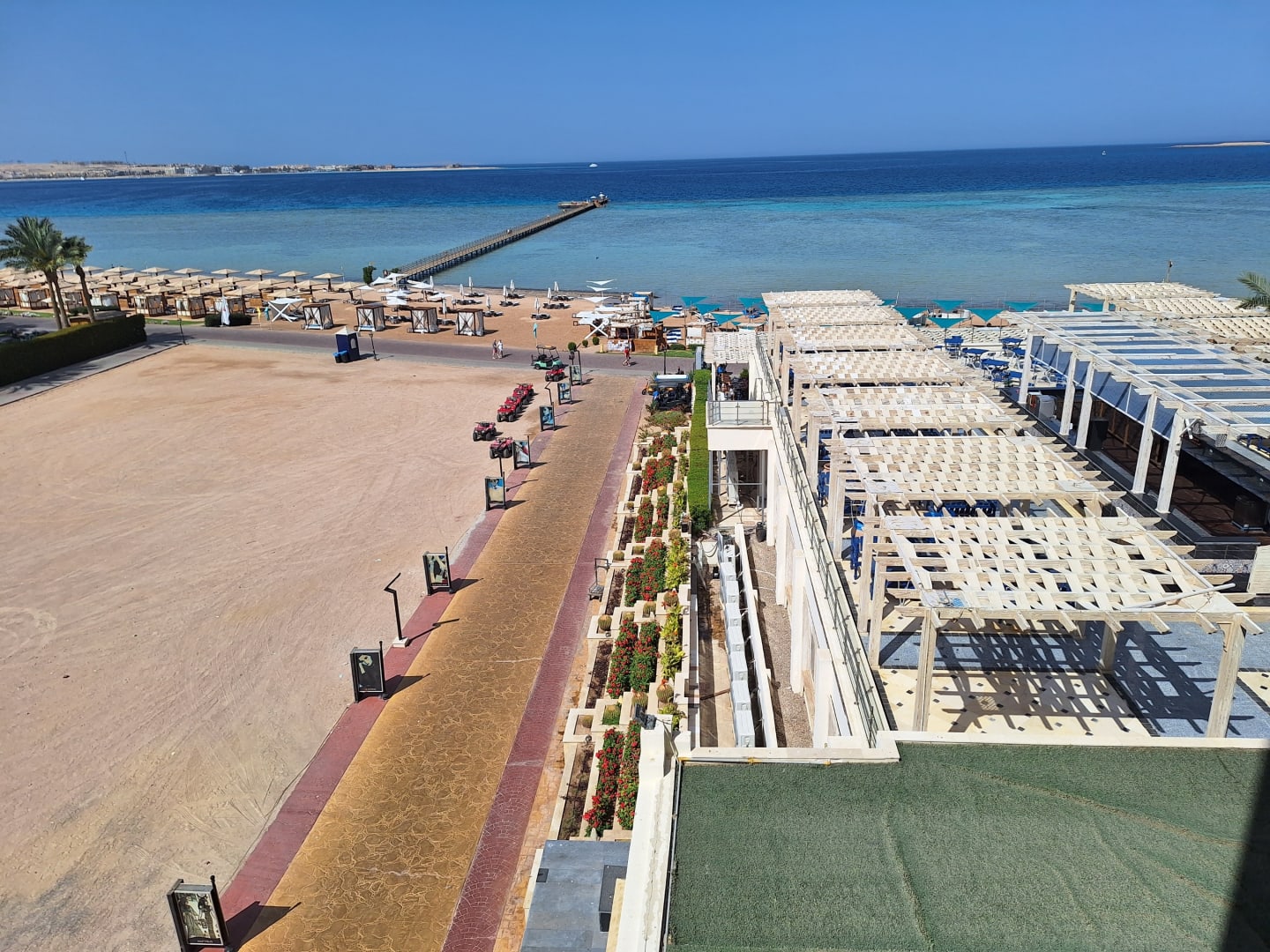 Blick vom Balkon zum Meer und zum Steg