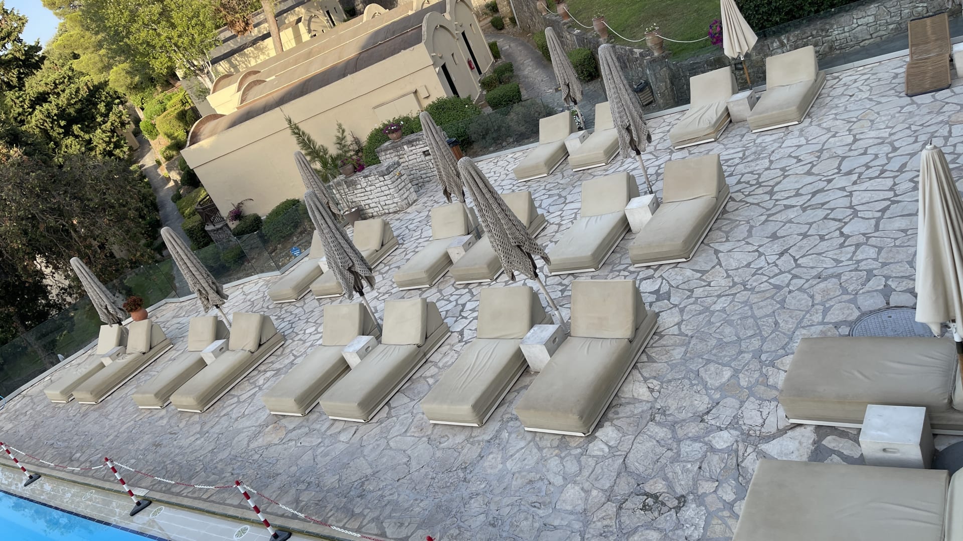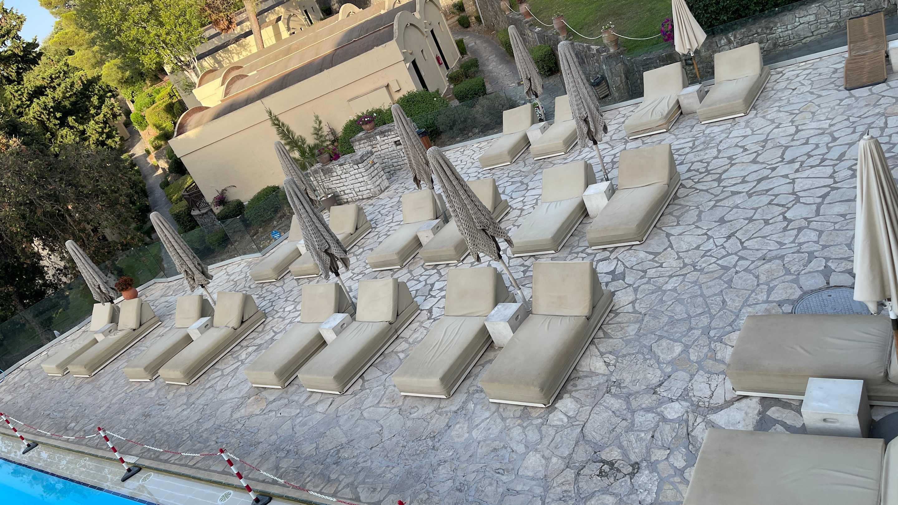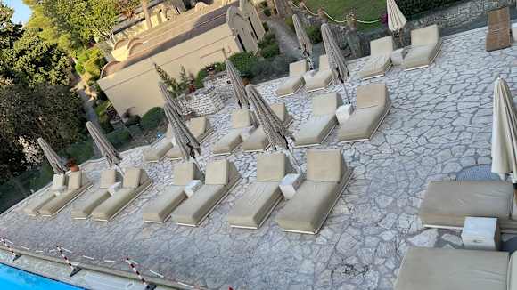 PoolDreckige Liegen am Pool. Pool selber schaut nicht besser aus. Poolumrandung wurde dieses Jahr mit Sicherheit noch nicht gereinigt