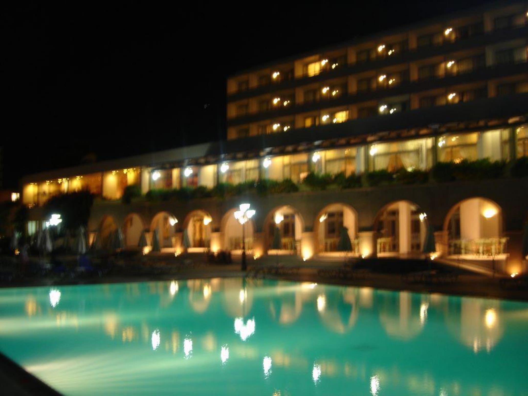 Hotel, sowie Pool am Abend