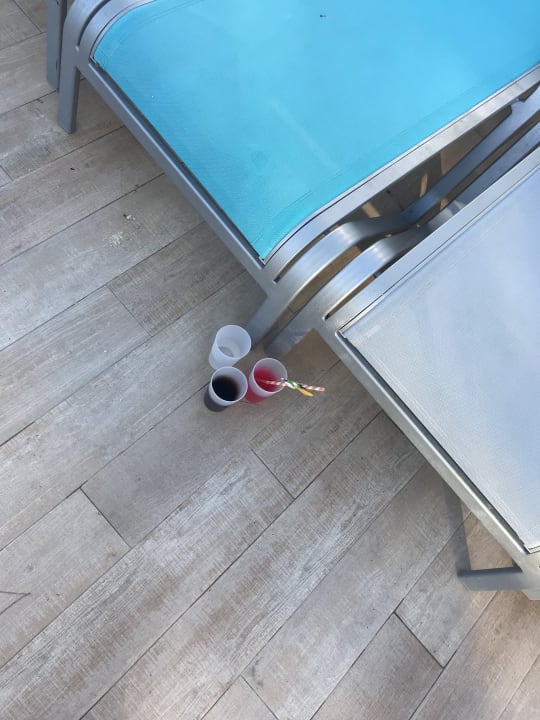 Überall die Becher...... In der 2.Woche hat der ältere Bademeister für Ordnung gesorgt! Ob auf Anweisung oder von sich aus weil er es nicht mehr sehen konnte wissen wir nicht! Trotzdem Hut ab für seine Arbeit 👍