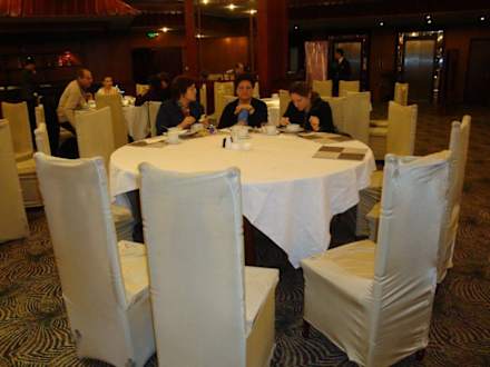 verschmutzte Tischtücher und Hussen prägen das Bild