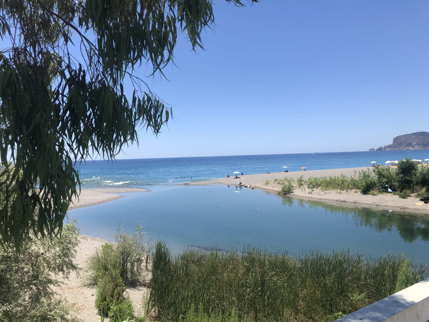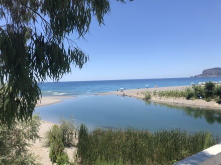 Dimçayı Fluss ins Meer, rechts ist der Hoteleigene Strand