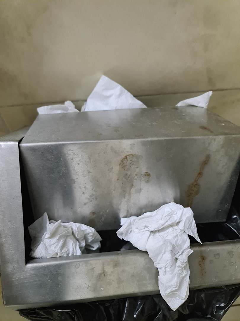 Abfalleimer in den sogenannten Sanitäranlagen am Pool