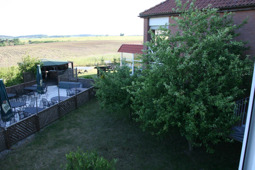 Blick aus dem Fenster auf den Biergarten