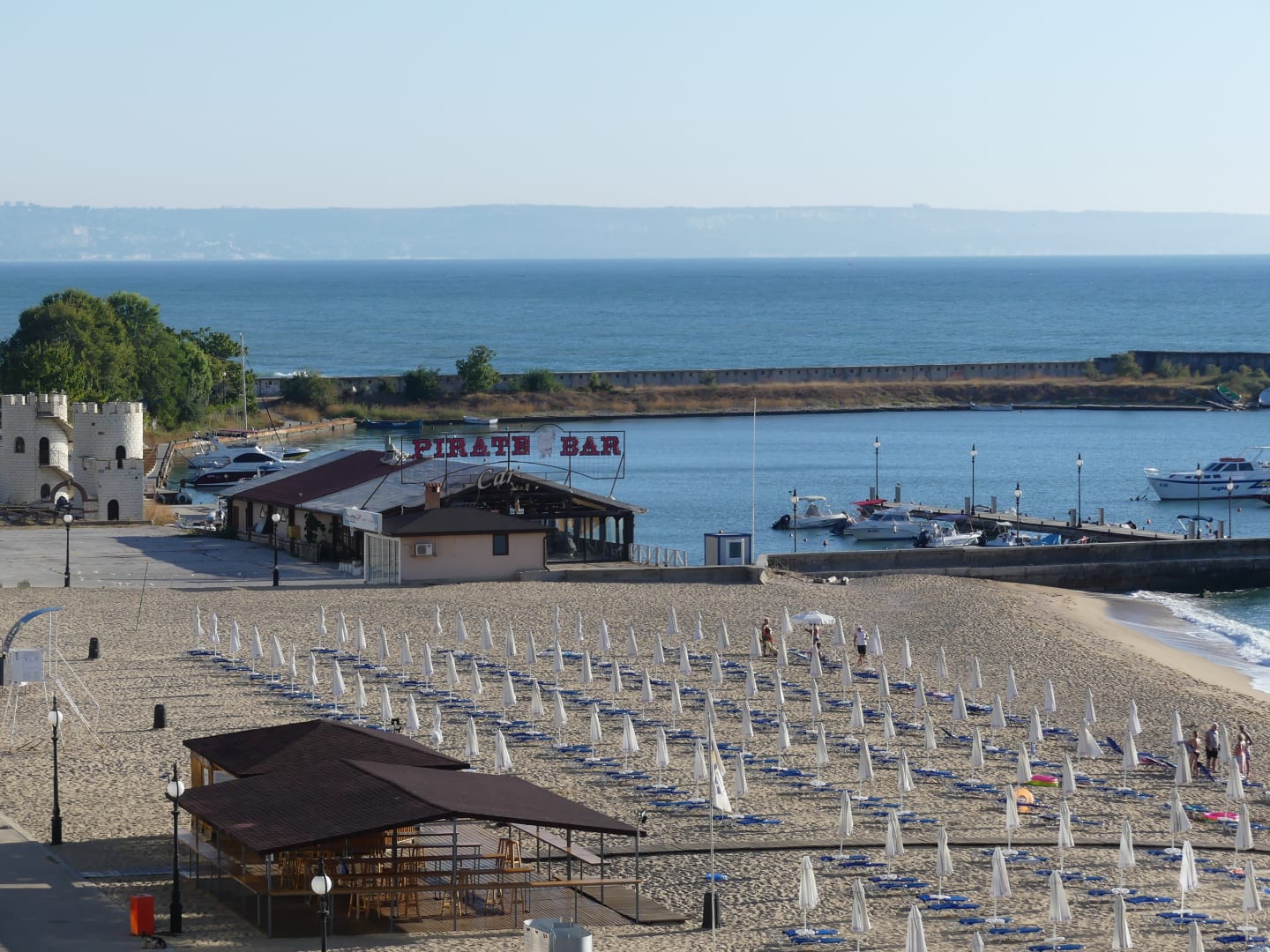 AusblickBlick in Richtung Norden aus der 5. Etage. Die Schirme und Liegen des Nachbarhotels wurden schon im September abgeräumt.