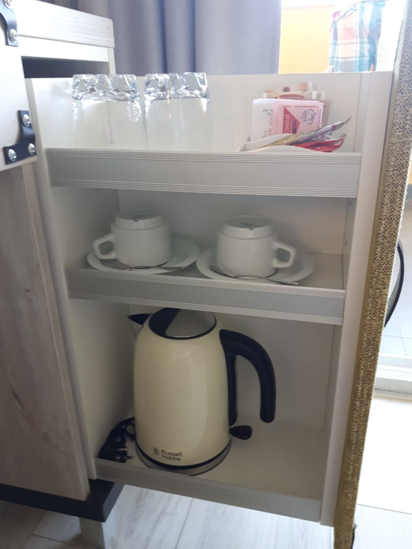 Wasserkocher mit Tee und auch Kaffee
