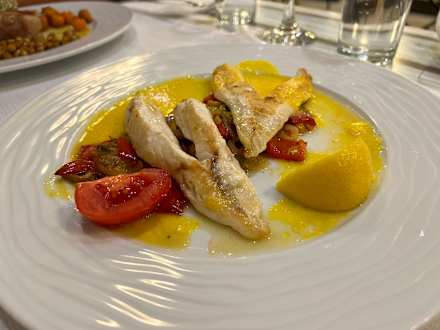 Bulgarischer Seehai mit Safran. Eine aufgekochte Mehlschwitze. Sehr lecker...