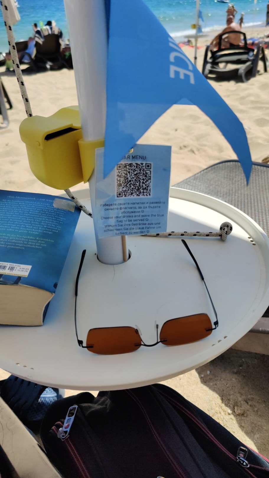 Heftig mit dem kleinen blauen Fähnchen winken wenn man Durst hat... ;-)