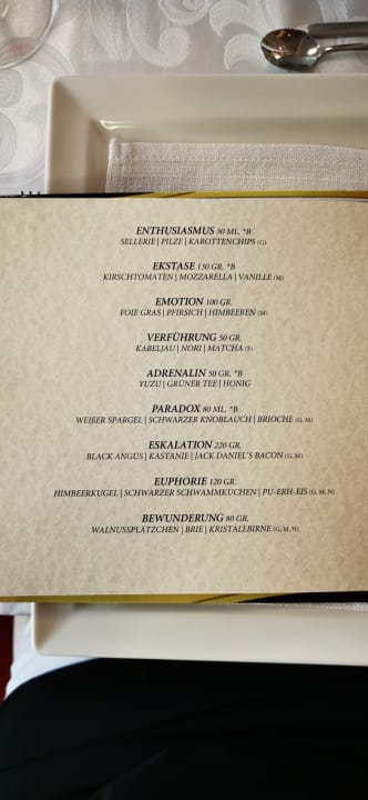 Speisekarte 9 Gänge Restaurant Fusion