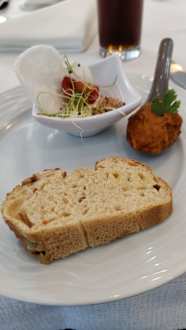kleine Vorspeise die ich mir ausgewählt hatte. Das Brot war warm.