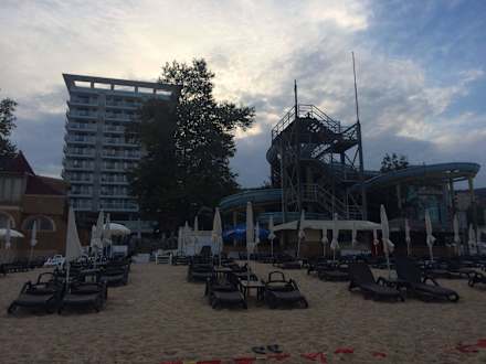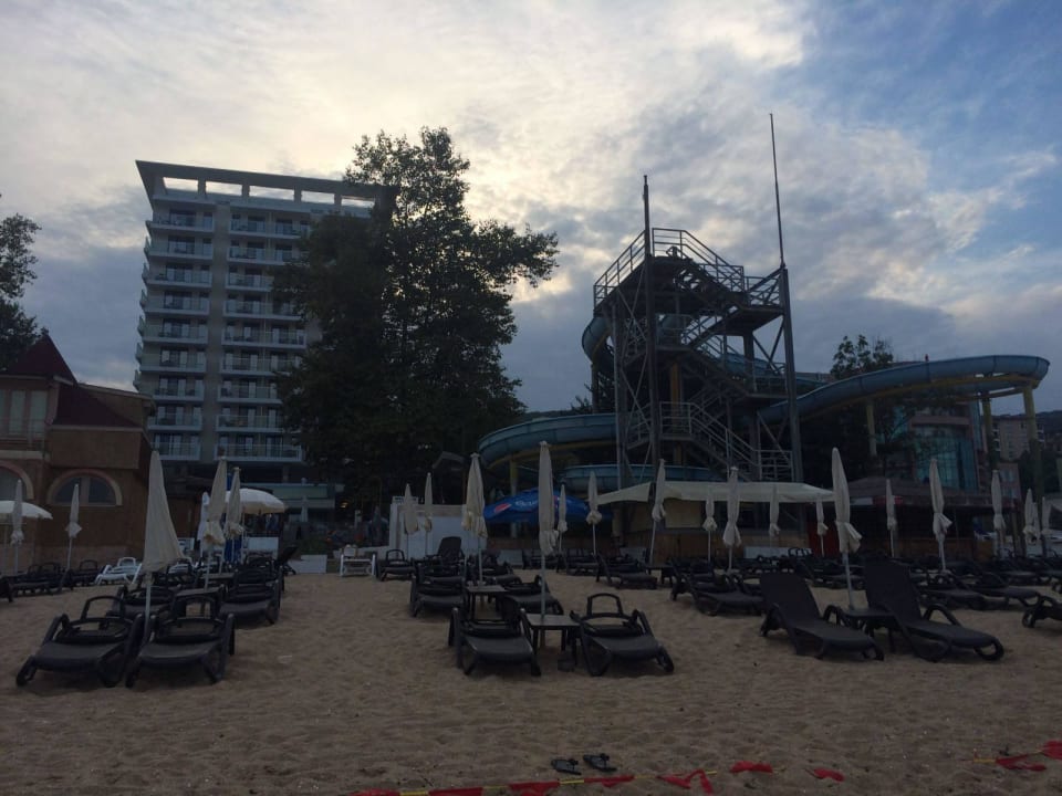 Hotelstrand, marode Rutsche
