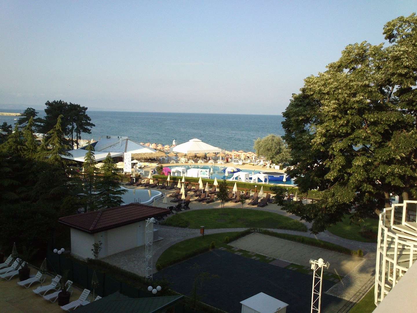 Sportplatz mit Pool im Hintergrund (link)