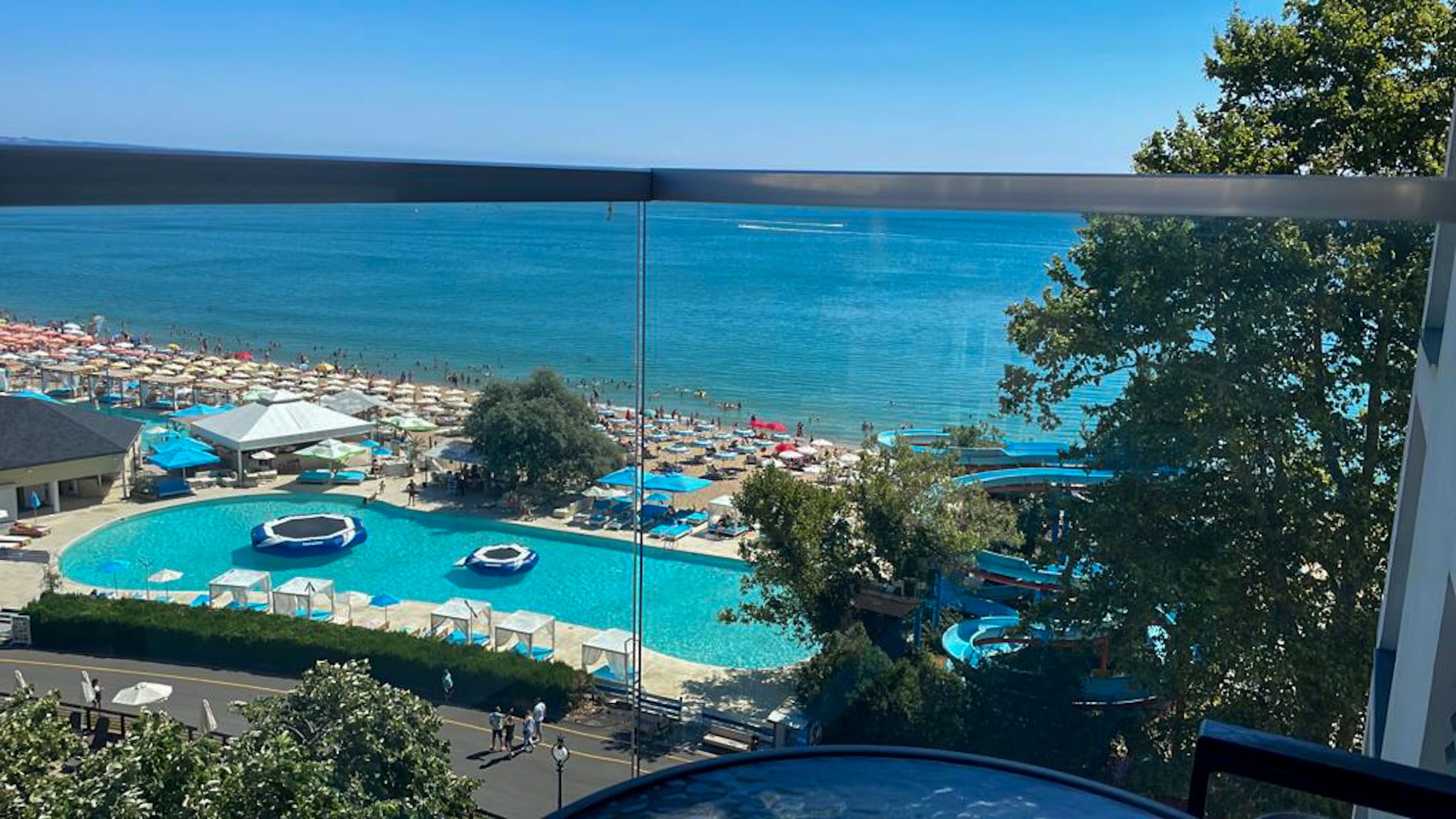 Die Aussicht vom Balkon in der 7. Etage. Es gibt 12 Etagen.