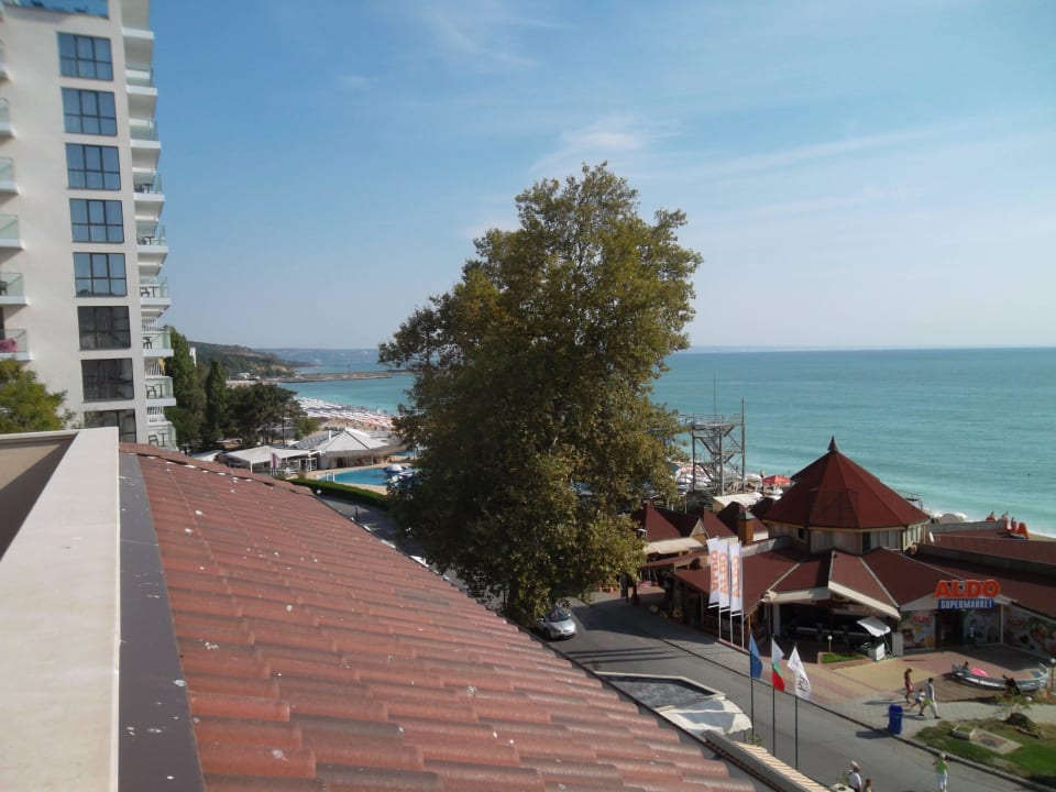 Rechts Supermarkt und Geschäfte,links ein teil des Hotel Metropol.