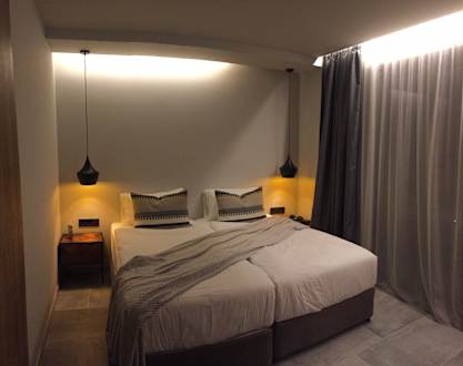Schlafzimmer in der SUM Suite (seitlicher Meerblick)