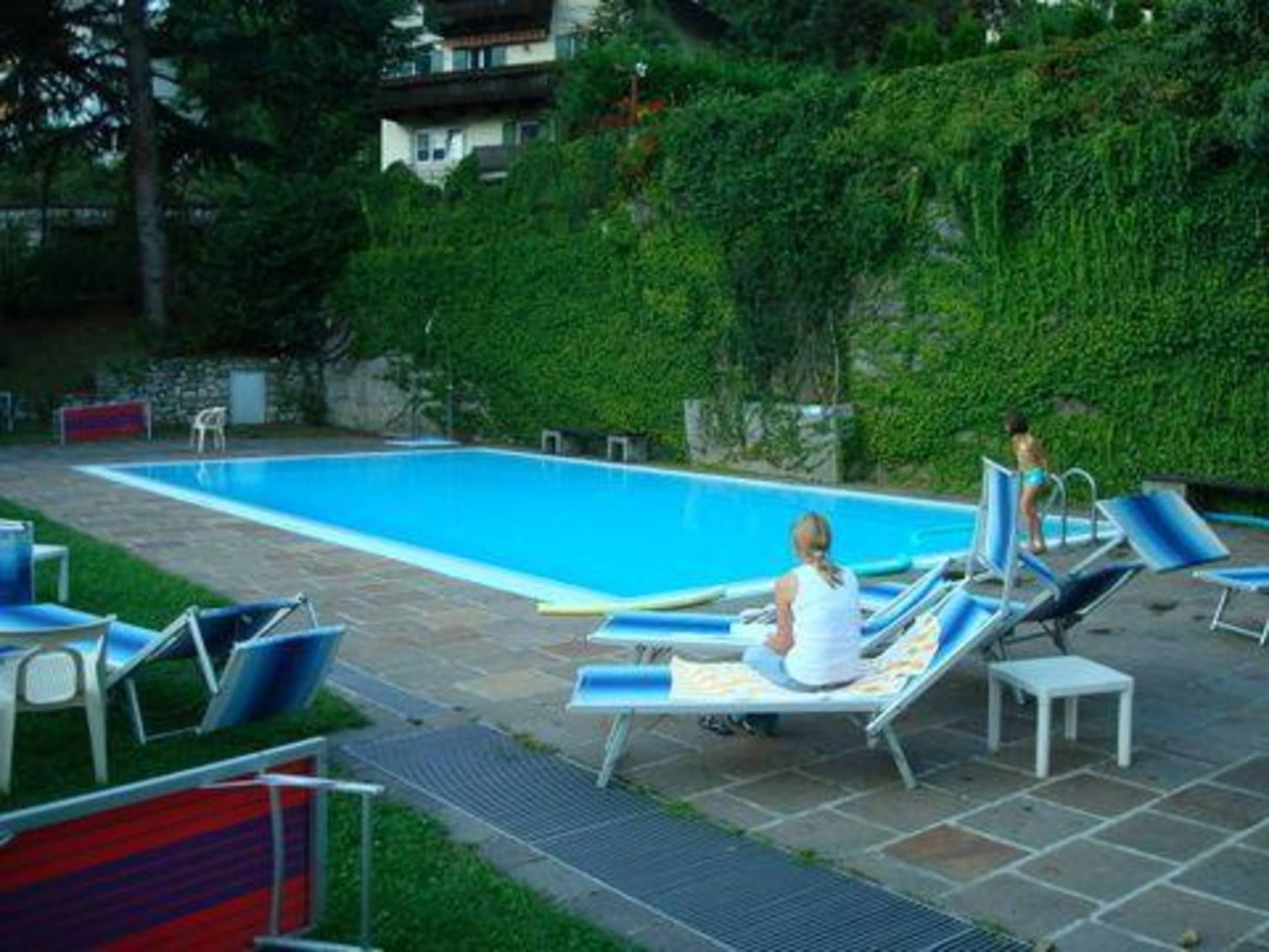 Der Außenpool - der Hit im grünen BaumTraumhafte Sicht über Brixen und auf die Berge. Geöffnet bis Sonnenuntergang. Oft wenig Leute dort.