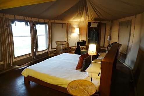 geräumiges Zelt mit Dusche und WC.