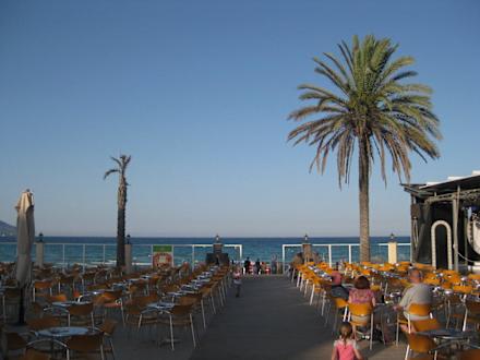 Der Gang zum Strand (rechts die Bühne)