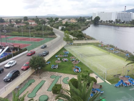 Aussicht auf Tennisanlage und Minigolf