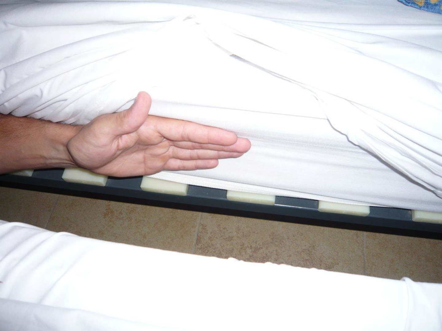 Hier sieht man wie dünn die veraltete Matratze war (10cm) Nach einer nacht hatte ich solche Rückenschmerzen, dass ich meine eigenes Kind (9kg) nicht mehr hochheben konnte