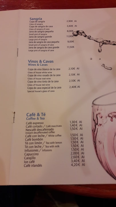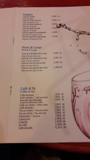 Teile der Getränkekarte