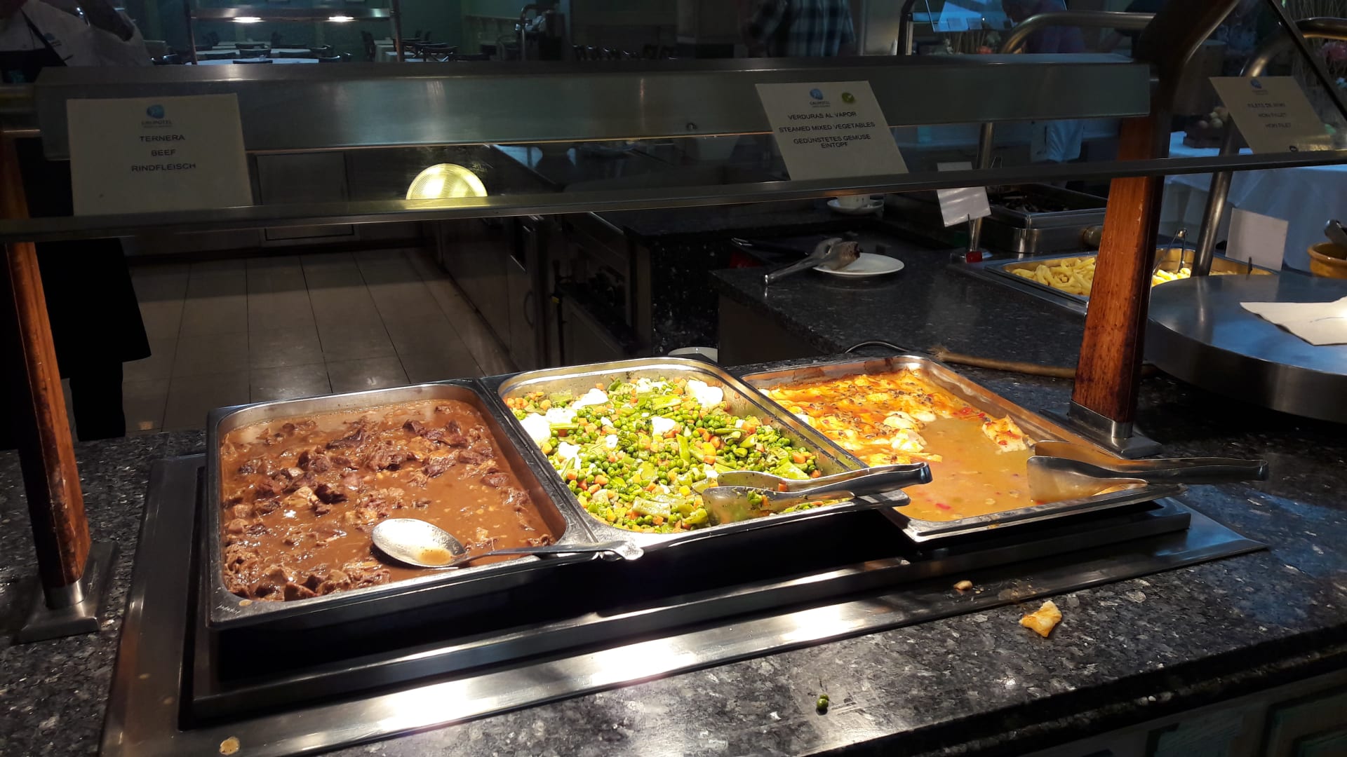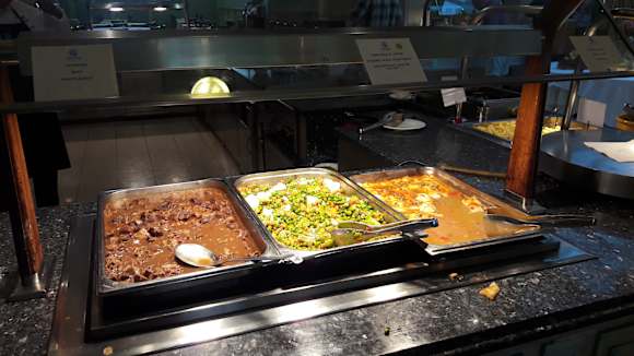 Links Gulasch, in der Mitte fast jeden Tag das gleiche Gemüse