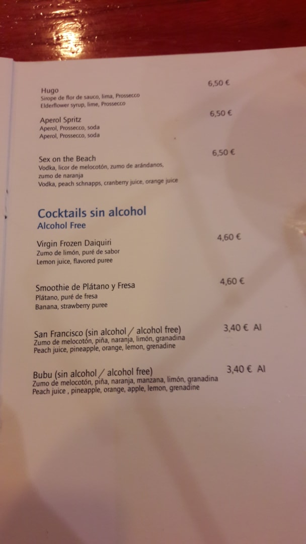 Teile der Getränkekarte