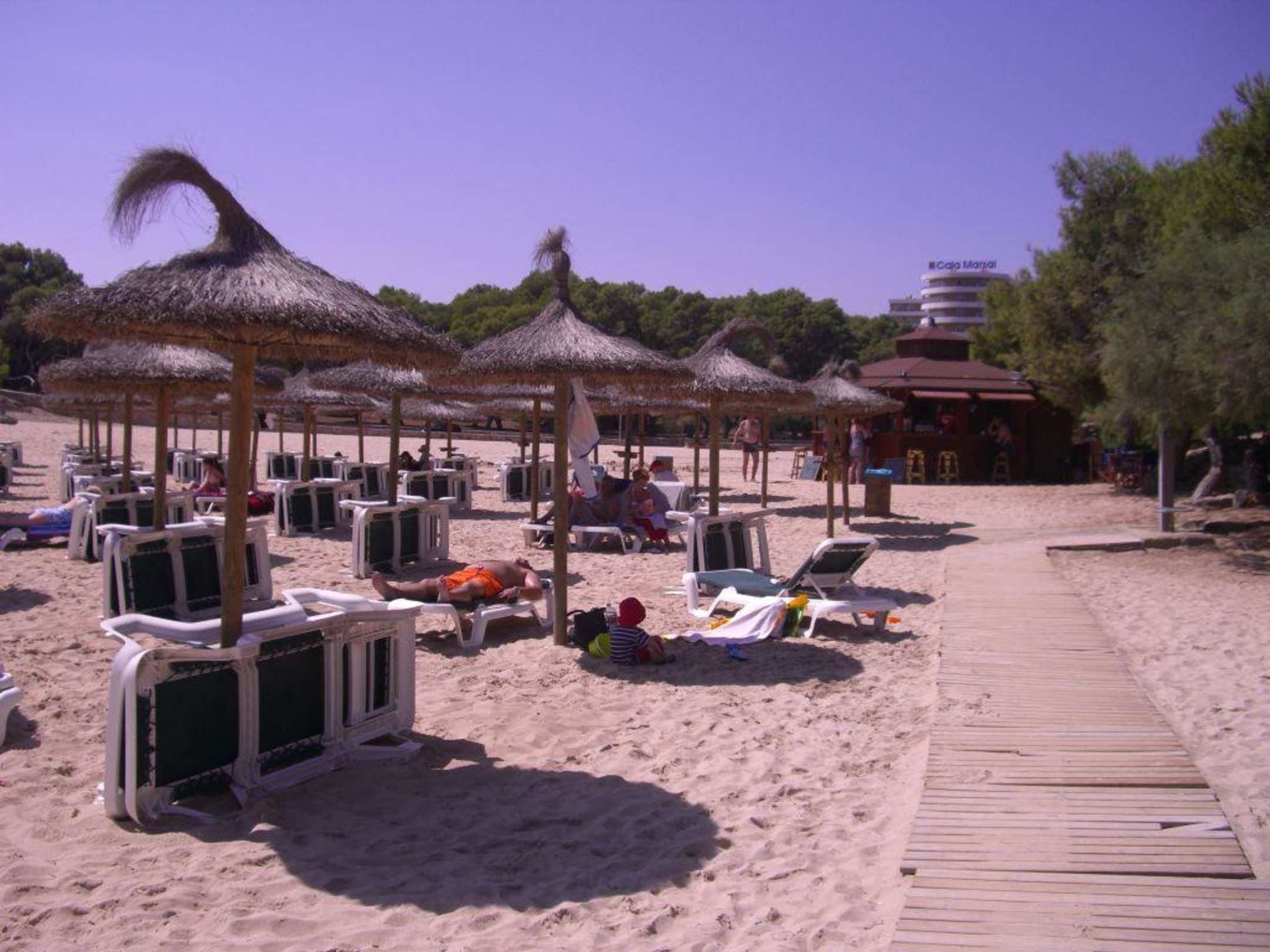 Strand bei Cala Masal mit Hintergrund des Hotels
