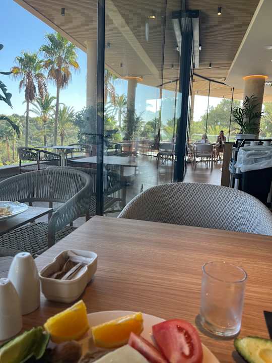 Frühstückssaal mit schönem Ausblick in den Palmengarten des Hotels