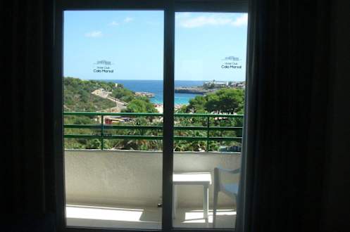 Blick über den Balkon zur Cala Marsal