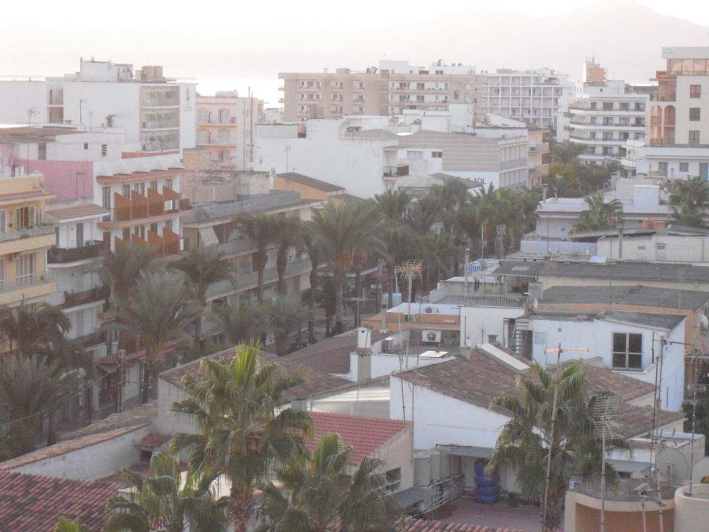 Blick vom Balkon über einen teil der Stadt.