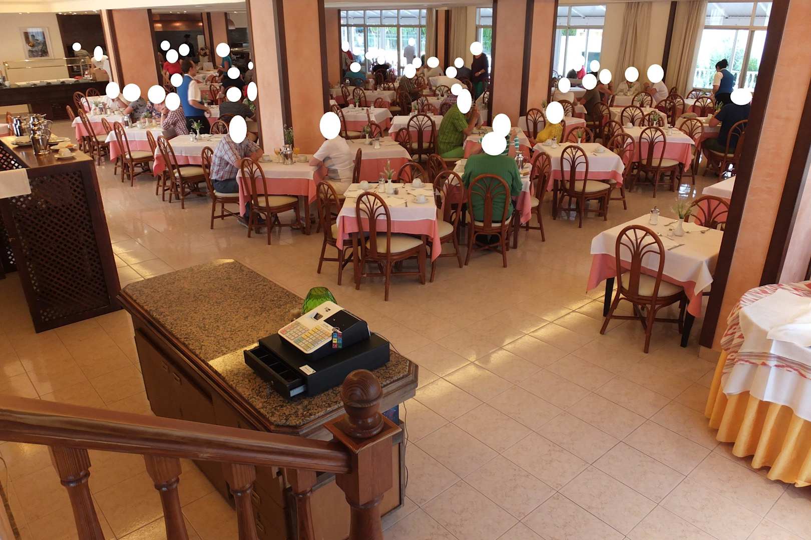 Blick vom erhöhten Eingang in den Speisesaal