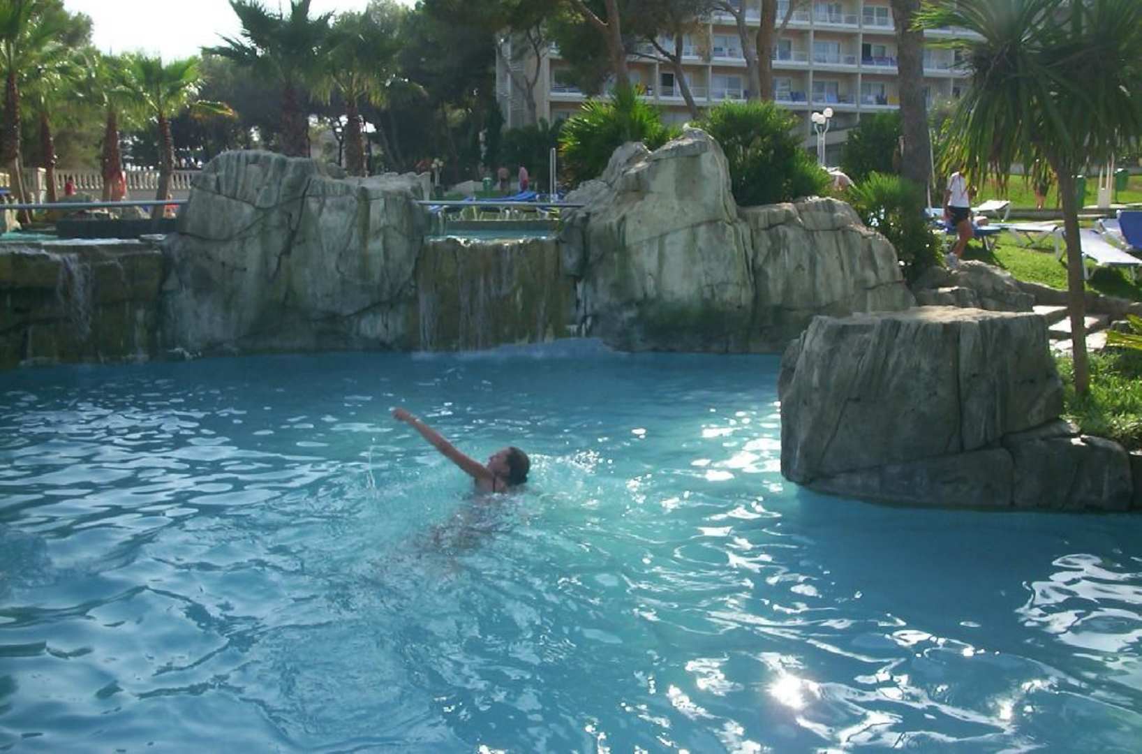 MAn sieht den unteren Pool des Hotels.