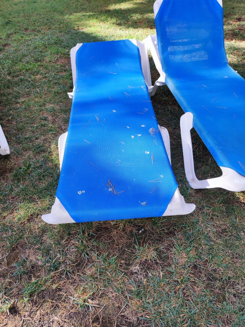 Es gab noch 2 schlimmere Liegen. Es wurde 3x an der Rezeption angesprochen und gesagt es würde alles täglich gereinigt. Das Bild ist an Tag 8 unseres Aufenthaltes entstanden. Angesprochen zum ersten mal an Tag 3.