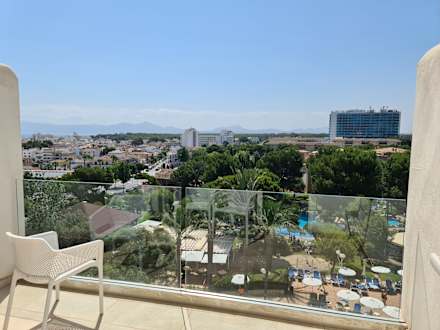 Balkon vom Wohnzimmer Ausblick aus der 5ten Etage In der 6ten Etage ist eine Bar. Das verücken der Stühle hört man, unserem Kind hat es nicht beim Schlafen gestört. Uns nur wenn es sehr oft hintereinander vorkam